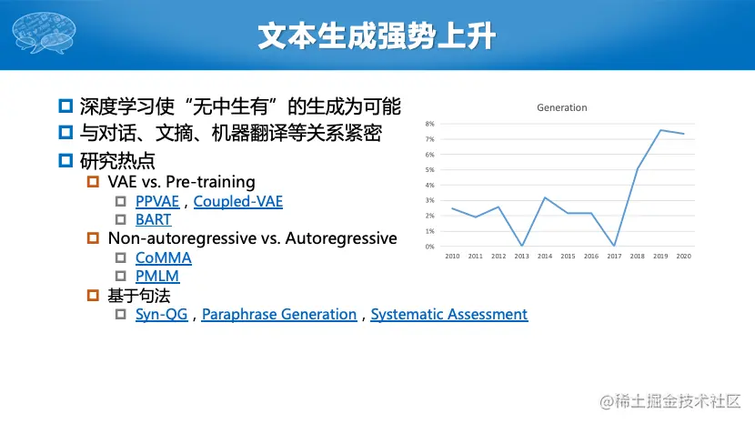 2015年之前,ACL上几乎没有人机对话的文章发表,但是从2016年开始,随着语音识别技术的突破,NLPer开始重视人机对话的研究,今年ACL该方向上的研究重点和研究趋势如下图所示。