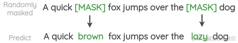 在这个方案中,文本中的单词是随机掩码的,任务是预测它们。与自回归公式相比,我们在预测掩码单词时可以同时使用前一个词和下一个词的上下文。