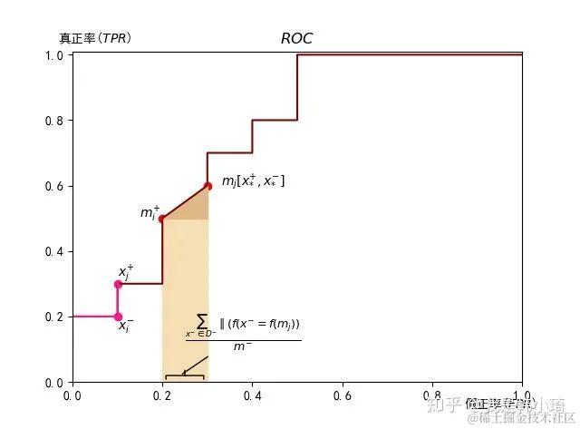 显然,在ROC曲线中,一条横线对应一个(或多个)负样本 , 一条竖线对应一个(或多个)正样本