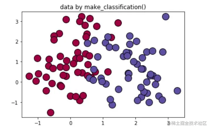 X,labels=make_classification(n_samples=100, n_features=2, n_redundant=0, n_informative=2, random_state=1, n_clusters_per_class=2)