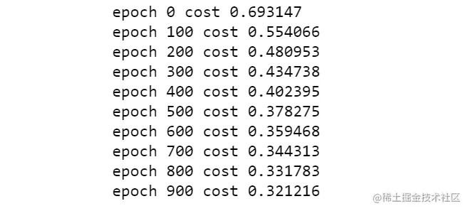 print('epoch %d cost %f' % (i, cost))
