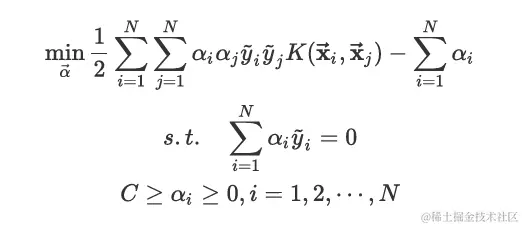 基于核函数的非线性支持向量机对偶优化问题如下: