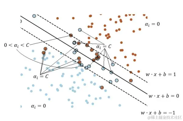 虽然凸优化问题可以直接求解,但当数据量很大时,直接求解将会非常低效,这时候可能需要一些高效的训练算法,比如说SMO(序列最小最优化)算法。关于SMO算法的内容这里不展开叙述,可参考统计学习方法了解更多内容。
