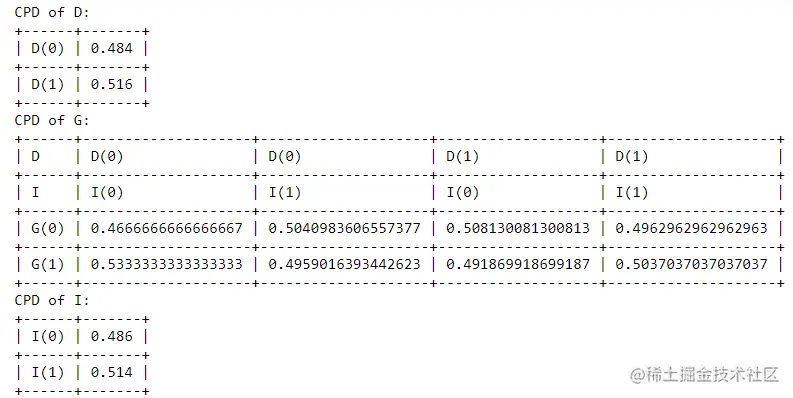 # 打印条件概率分布