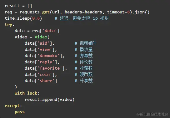 详细代码请移步至 bili.py,项目地址:chenjiandongx/bili-spider 欢迎围观*****长按扫描关注Python中文社区,获取更多技术干货!