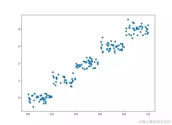 本部分使用了事先准备好的分段线性数据来构建模型树,数据点可视化如下: