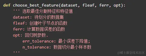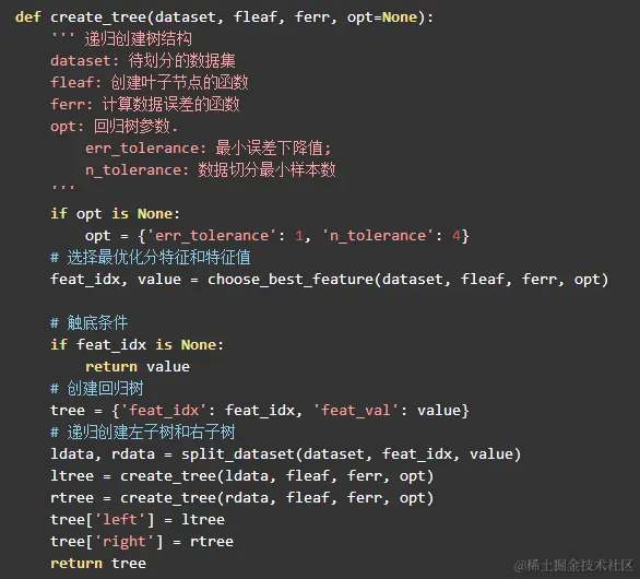然后就是最主要的回归树的生成函数了,树结构肯定需要通过递归创建的,选不出新的分割点的时候就触底: