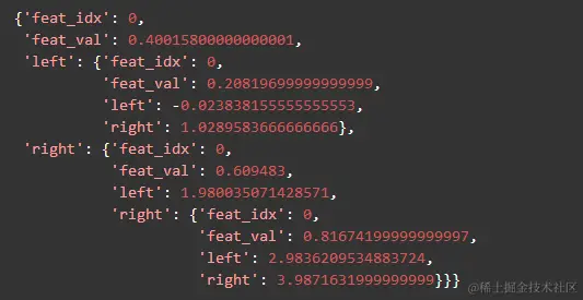 通过Python字典表示的回归树结构: