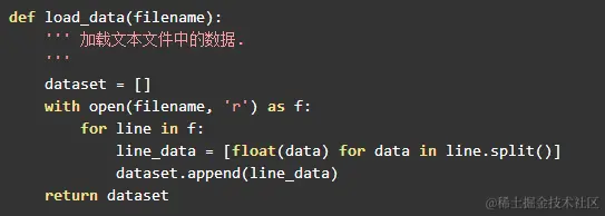 首先是加载数据的部分,这里的所有测试数据我均使用的《Machine Learning in Action》中的数据,格式比较规整加载方式也比较一致, 这里由于做树回归,自变量和因变量都放在同一个二维数组中: