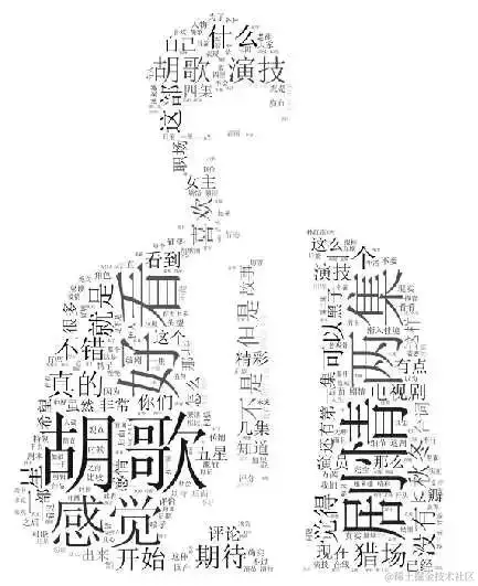 词云的背景是胡歌,大家看出来了嘛?目前豆瓣的分数已经是6.2分,目前剧情过半,相信接下来会更精彩,个人认为分数会在7.5分以上。