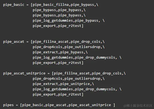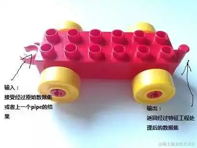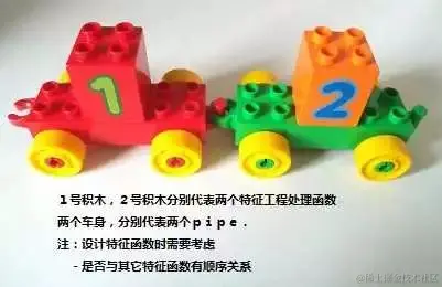 两个或者更多车身积木连在一起,就变成长长的火车身。两个或者多个pipe(装入特征函数)就变成了特征工程管道