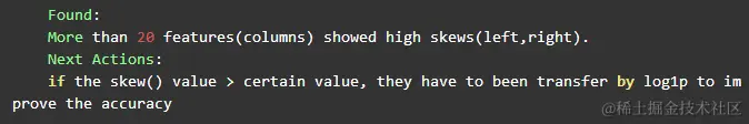 1.有偏度 - 需要处理。通常是用log1p (提分关键)
