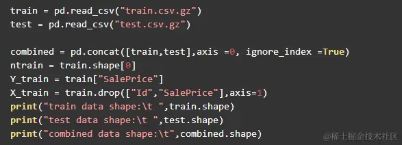 在Kaggle 比赛中,有原始数据,train, 和test 部分。 把这两部分合并在一起。作为火车头的输入。以House Price 为例: