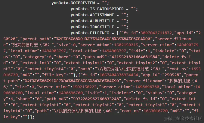 yunData.FILEINFO 结构如下,你可以将它复制粘贴到json.cn里,可以看得更清晰。