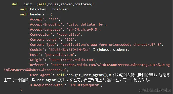 除了上面说到的两个 cookie ,其他的请求头参数可以参照手动转存时抓包的请求头。这两个 cookie 预留出来做参数的原因是 cookie 都是有生存周期的,过期了需要更新,不同的账号登录也有不同的 cookie 。