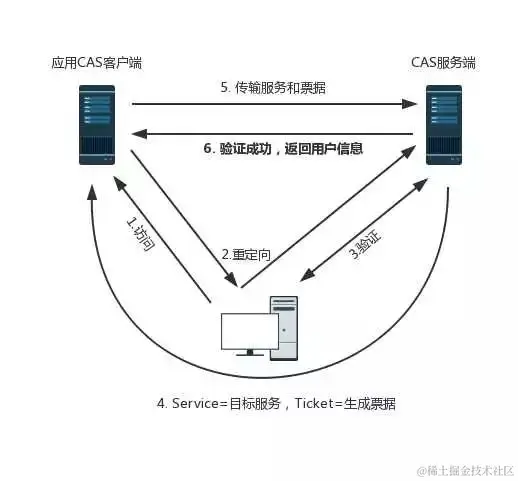 用户、CAS客户端、服务端三方交互过程