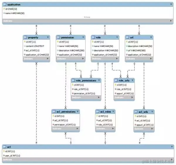 依模型图可以看出,一个应用可划分多个角色、权限、路径和属性,其中角色又可包含同应用下的权限和路径。一个用户对应一个ACL,通过将不同的控制单元授予用户,即可完成用户的访问控制配置。