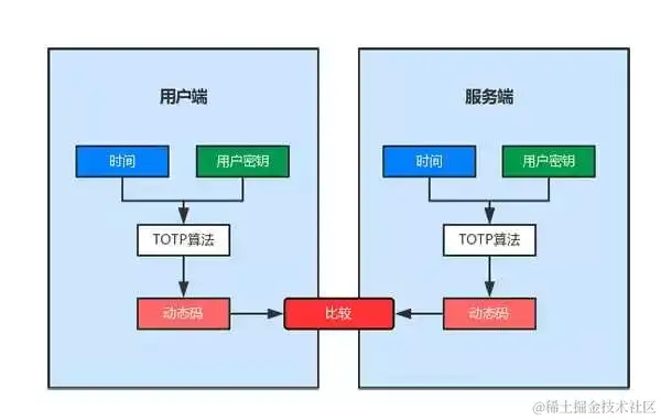 TOTP (Time-base One-Time Password) ,基于时间的一次性密码,也称时间同步的动态密码。当在一些用户不方便输入密码或者忘记密码的场景中,我们可以使用TOTP进行认证。服务器和用户各自保管共同的密钥,通过比对基于时间分片与哈希计算出的动态数字验证码即可完成对用户身份的认证。主流实现为Google Authenticator(Google身份验证器),阿里的身份宝也兼容该算法。