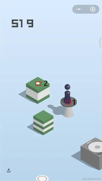 先点击 1 号点,再点击 2 好点即可。按压屏幕,执行跳跃操作