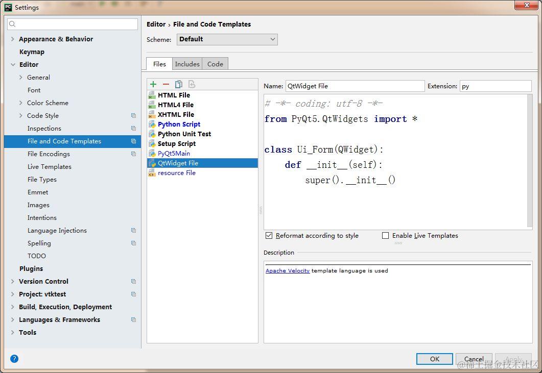 文件模板在“settings…”对话框的“Editor”→“File and Code Templates”中设置和查看。如图3所示。 图3 文件模板