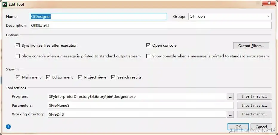 程序:$PyInterpreterDirectory$\Library\bin\designer.exe