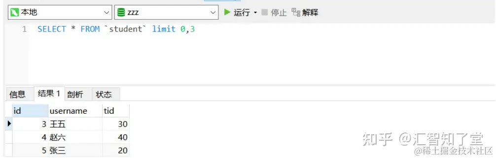 select * from student limit 0,3; select * from student limit 3,3; -- limit是一个mysql“方言”
