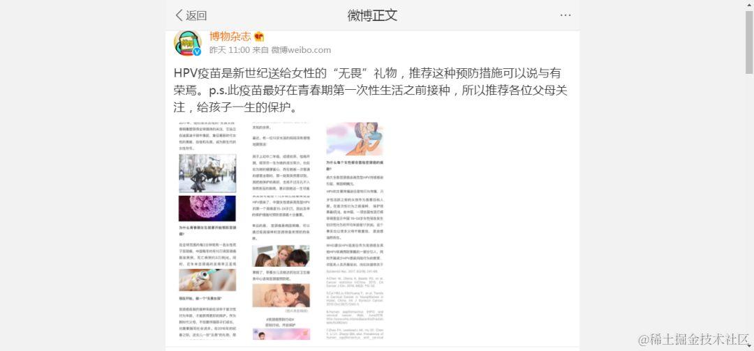 以爬取“博物杂志”第3条微博为例,原博内容如下: