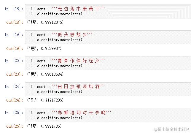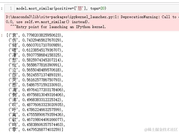 注意,在这里得到的情绪相关字,笔者将收集整理它们,制成情绪词典,用于后面的诗词情绪分类。