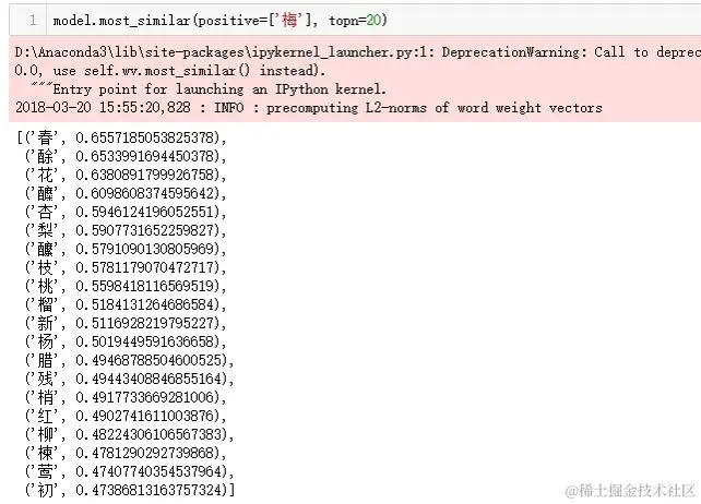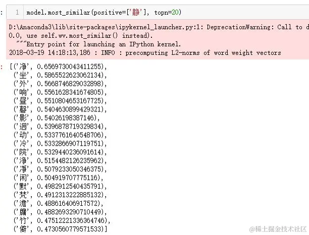 因为之前的文本预处理是按字来切分的,所以这里进行的是基于Word2vec的字向量分析。
