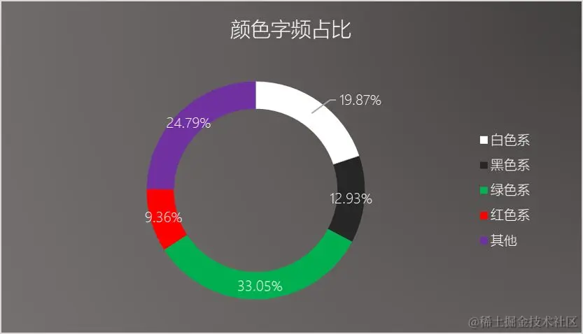 将上述主要的色系综合统计一下,得到下面的环形占比图: