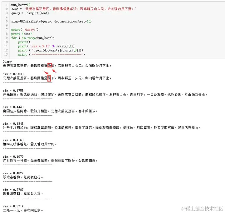 七、 相似文本检索:用WMD查找相似诗词