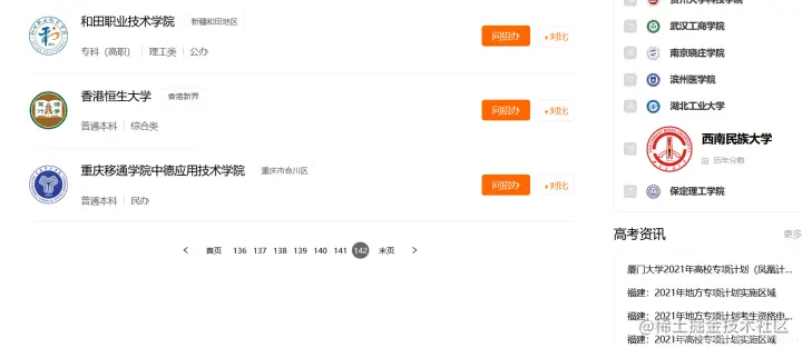 一页20个学校,总共一百多页: