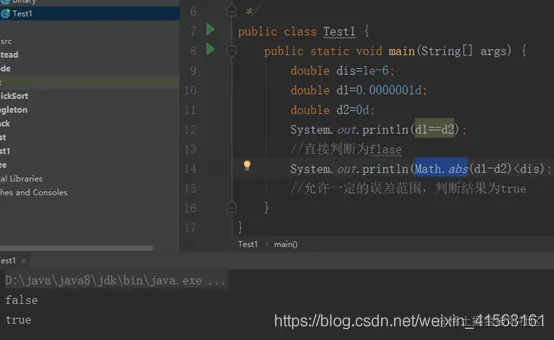 对于double类型,比如double d1=0.0000001,double d2=0d 当判断两个数据d1和d2是否相等的时候,一般不直接使用