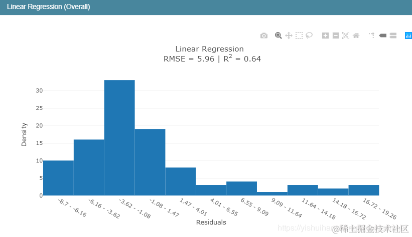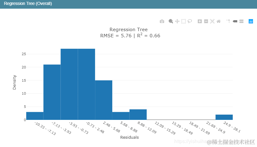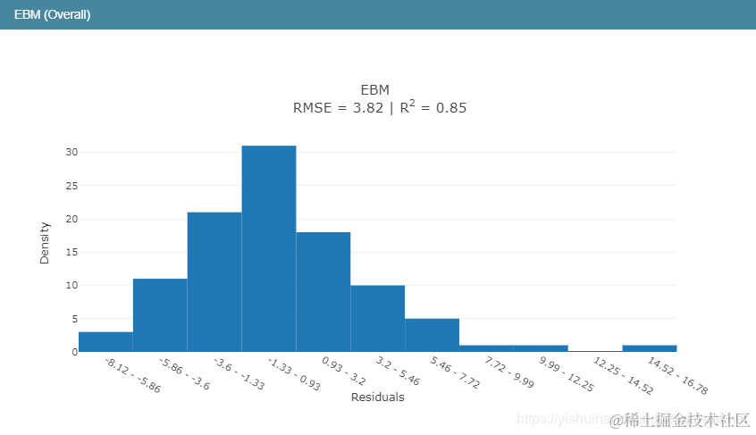 在回归模型中,我们知道R2表示的是判定系数,在我前面的博文里面对于回归模型的四大评价指标都有介绍,感兴趣可以去看看,相关的代码实现都有的,这里简单来说就是判定系数越高表明回归模型的拟合程度越好,模型的性能就越好。从判定系数来看:EBM模型的性能要优于线性回归模型和回归树模型。