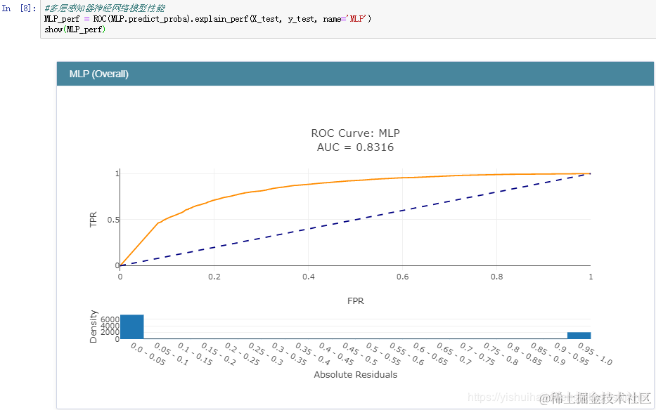 "MLP_perf = ROC(MLP.predict_proba).explain_perf(X_test, y_test, name='MLP')\n",