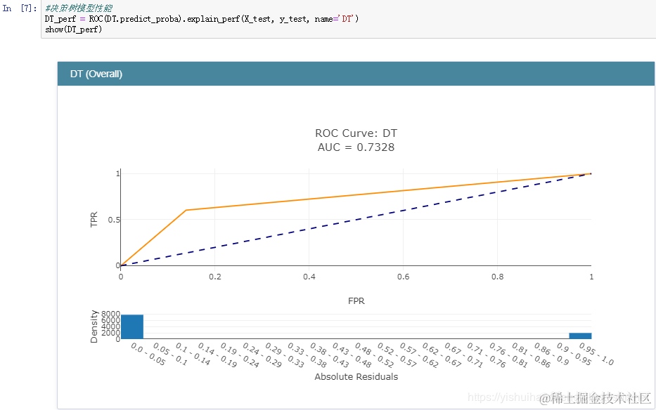 "DT_perf = ROC(DT.predict_proba).explain_perf(X_test, y_test, name='DT')\n",