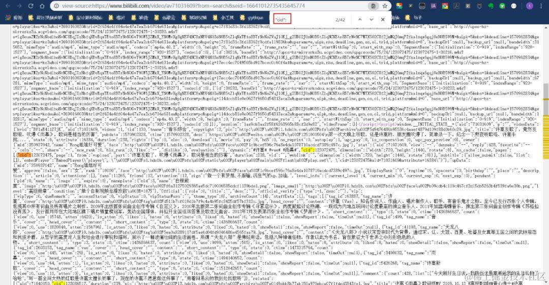 ****右键网页,打开网页源代码,搜索 "cid": 就能找到: