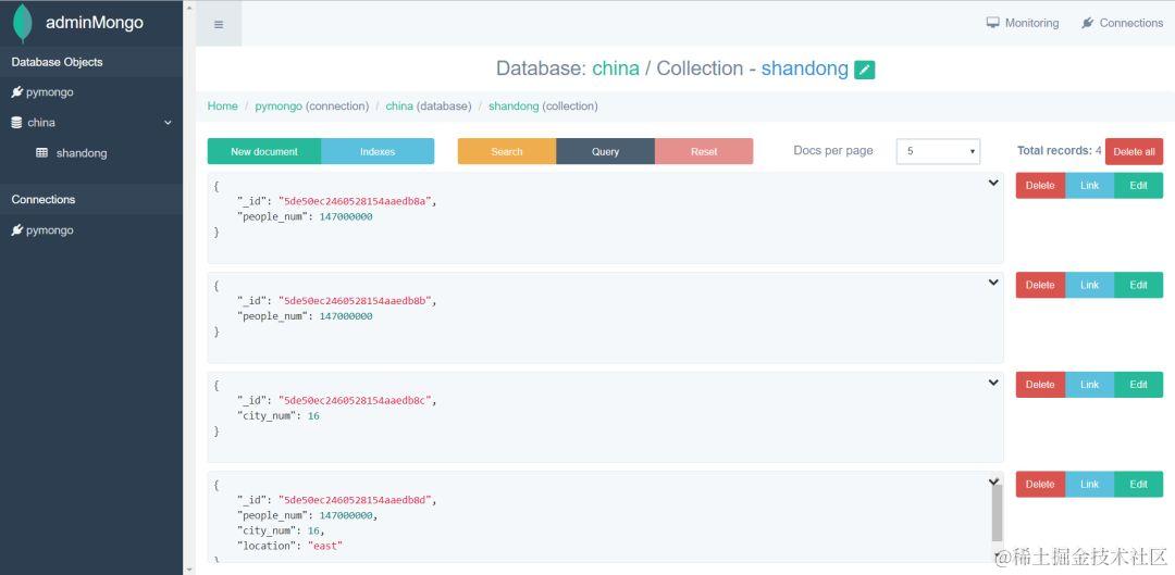 collection.find({},{'people_num':0,'city_num':1})#这样写会报错,也就是find({},{query}),query中不能同时含有两个数据项(_id除外)