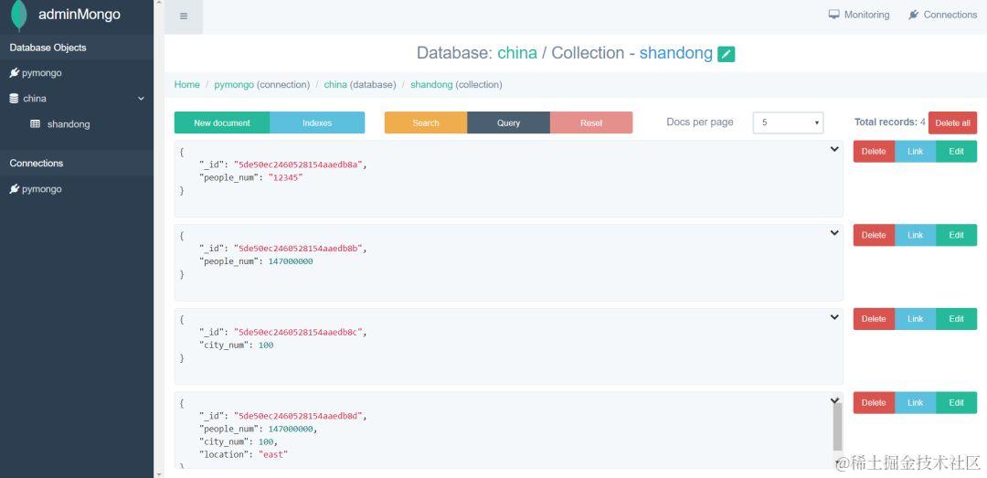 下面增、删、改、查的操作都是在上面 collection这个对象的基础上进行操作