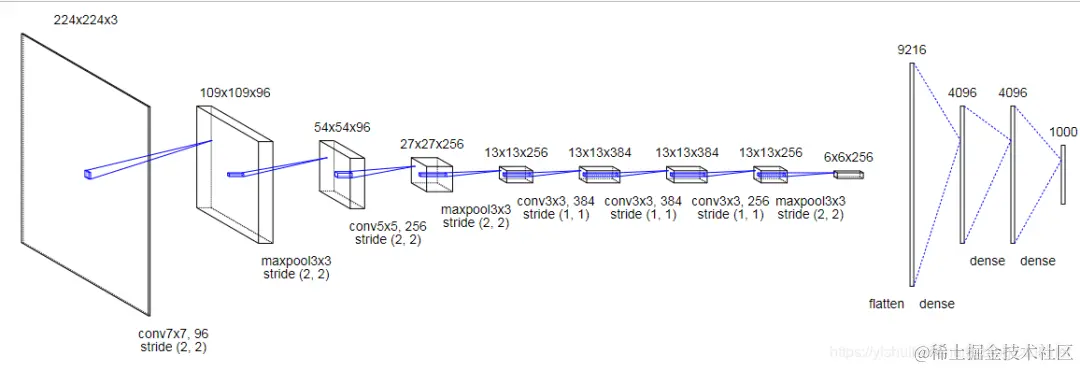 model.add(Conv2D(96, (11, 11), (4, 4)))