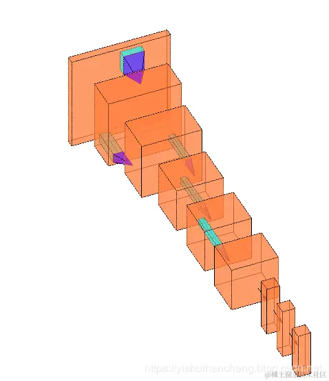 模型结构的可视化都是基于参数的输入设定直接绘制保存本地的,这款神器的绘图效果个人觉得相比上面几种来说更美观一点,不知道大家怎么看,这款神器的名字叫【PlotNeuralNet】,是一位专业科班的大神编写的,效果还是很不错的。暂时没有提供在线体验地址,这里给出来GitHub地址请见下方。