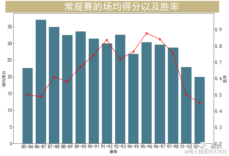 各个赛季的场均得分以及胜率