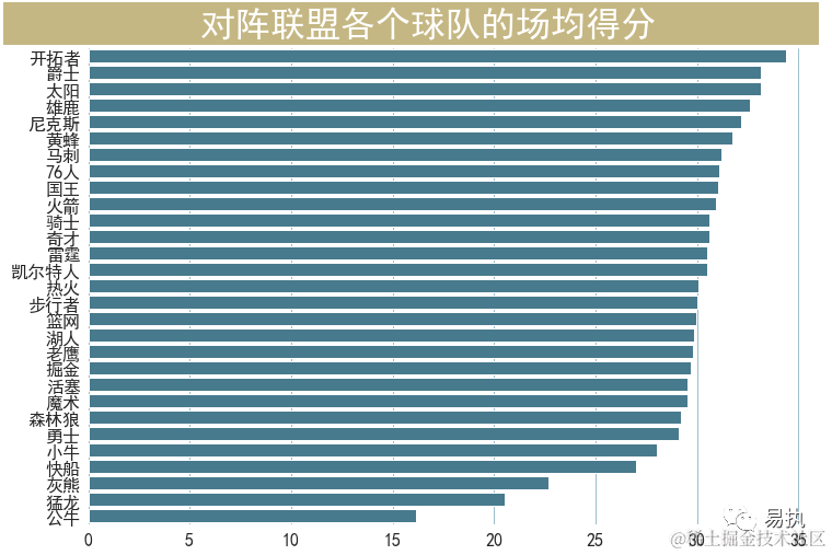 从对阵联盟各个球队的场均得分图中看,乔丹在对阵绝大部分球队时场均得分能超过25,甚至对过半数的球队能达到场均30分的水平(这砍分能力也是没谁了),排名前三的都是西部的球队,乔丹是一打西部的球队就兴奋,还是西部的球队比较强,需要乔丹不断输出?