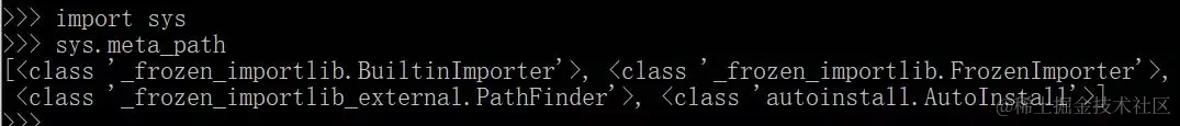 这段代码中使用了sys.meta_path ,我们先打印一下,看看它是个什么东西?