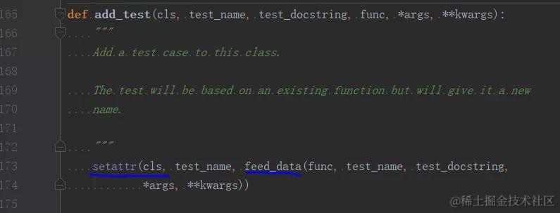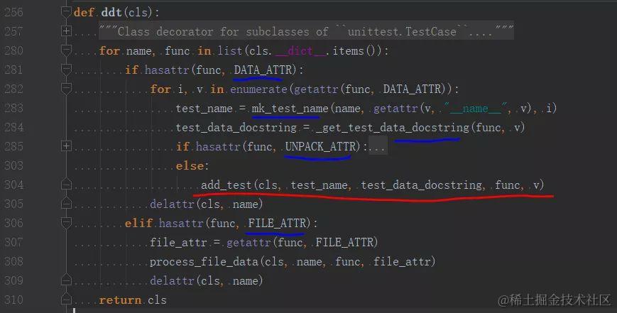 它们的共同作用是在类方法上 setattr() 添加属性。至于这些属性在什么时候使用?下面看看加在类上的 @ddt 装饰器源码: