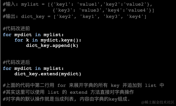 1. 使用 dict 的默认操作符可以方便的获取到 key, 减少不必要的 dict.keys() 和 dict.has_key() 操作