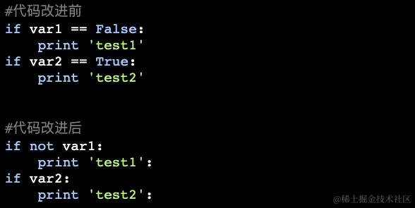 - 永远不要用 == 或者 != 来比较 None 和布尔值, 直接使用 if x: 代替, 如果需要区分 False 和 None, 可以使用 if x is None: 这样的语句.
