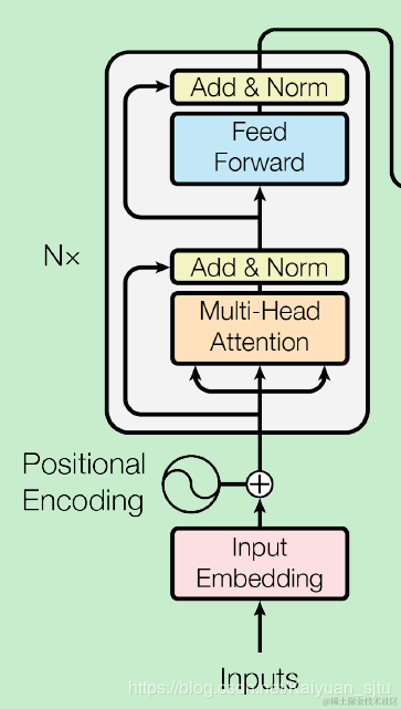 - 详细一点就是 embedding --> N *【multi-head attention --> Add(Residual) &Norm--> Feed-Forward --> Add(Residual) &Norm】;