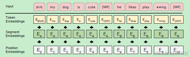 # segment_emebdding. 表示第一个样本前两个词属于句子1,后一个词属于句子2.