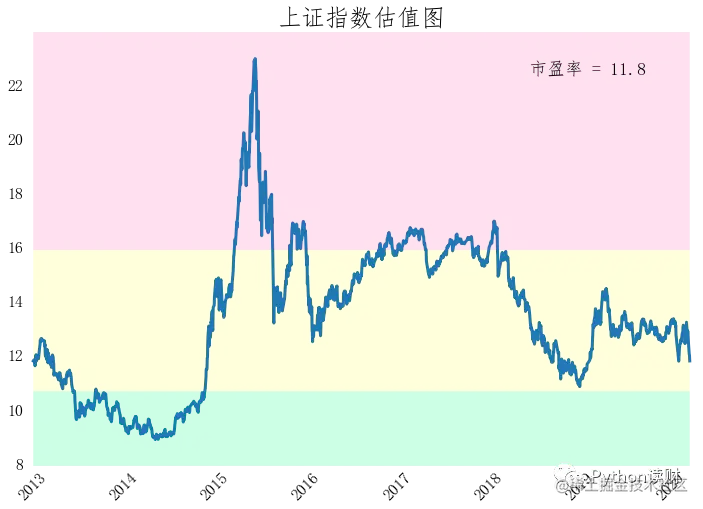 ax.text(0.75,0.9,"市盈率 = {}".format(now),transform=ax.transAxes,fontdict={'size':18})